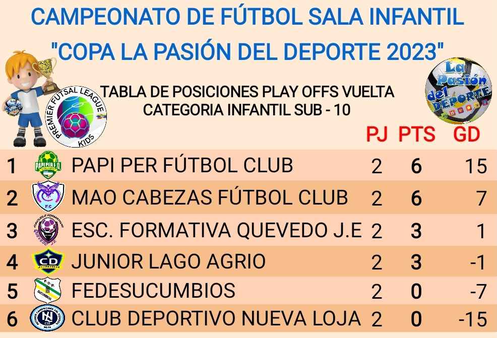 La categoría sub 10 del Campeonato de Fútbol Sala Infantil sub 10 Copa La Pasión del Deporte se desarrolló y ya están los semifinalistas