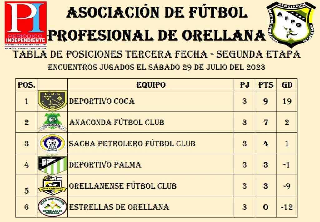 El pasado sábado 29 de julio se llevó a cabo la 3ra fecha donde Deportivo Coca continúa como líder.