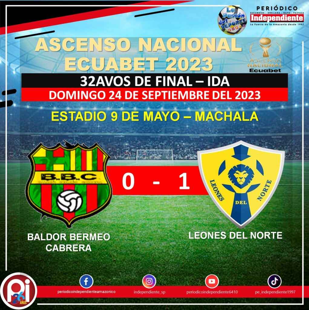Baldor Bermeo Cabrera tuvo que emigrar hasta El Oro para jugar de local en el Estadio 9 de Mayo de Machala frente a Leones del Norte donde se vio superado 0 – 1 con solitario gol de Jean Pierre Lugo a los 68 minutos, la revancha se jugara en Imbabura donde los azuayos esperan dar vuelta ese marcador.