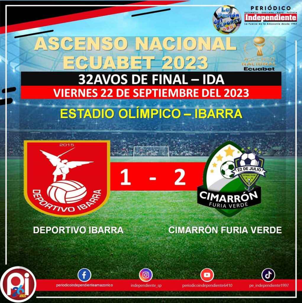 La jornada de esta primera fase del Ascenso Nacional inicio el pasado viernes 22 de septiembre donde Deportivo Ibarra recibió en el Olímpico de Ibarra a Cimarrón Furia Verde con una victoria importante para los esmeraldeños 1 – 2, a penas a los 4 minutos de iniciado el compromiso Jorge Mendoza puso en ventaja a la visita, a los 10 minutos Pablo Anangonó puso el empate para los locales 1 – 1, a los 41 minutos Jonathan González anoto el 1 – 2 con el cual se iban al descanso, en la parte complementaria el marcador no tendría alteración y los primeros 90 minutos serían para los esmeraldeños que esperaran cerrar su clasificación en el Folke Anderson.