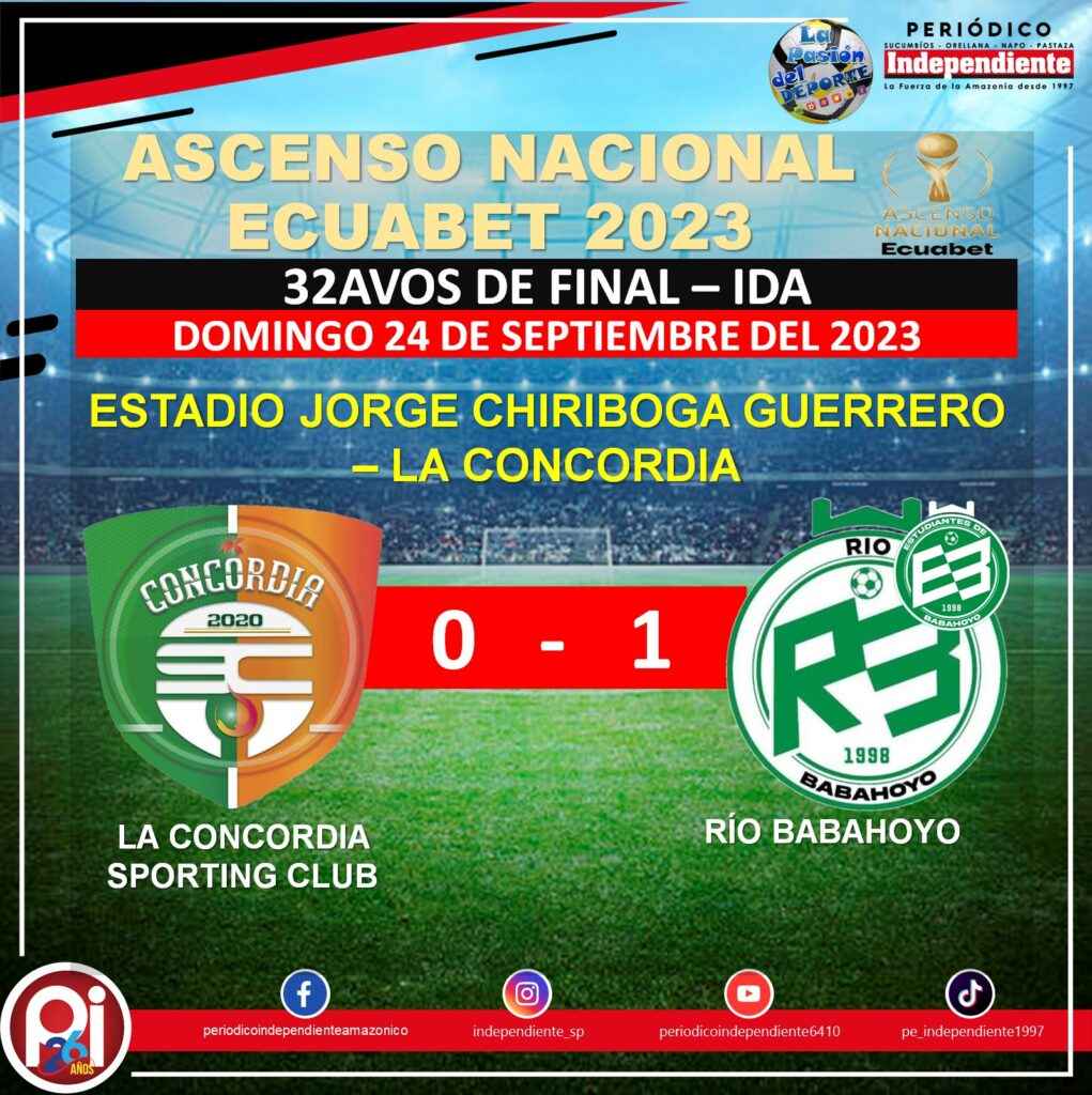 Río Babahoyo se alzó con la victoria 0 – 1 de visita en el Estadio Jorge Chiriboga Guerrero ante la Concordia cuando todo parecía que iba a culminar en igualdad sin goles, Albieri Mayorga a los 90+1 minutos sentencio la victoria visitante para llevar ventaja hasta la ciudad de Babahoyo.