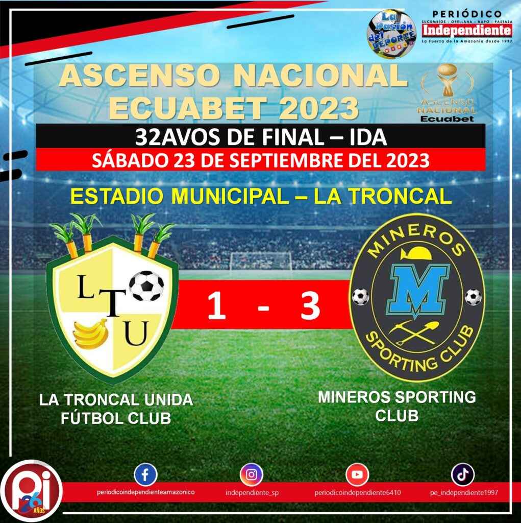 La Troncal Unida no pudo en casa quedarse con un buen resultado y se vio superado ante un gran equipo Bolivarense como el Mineros Sporting Club, Vera anoto el único gol local, pero la buena actuación de Héctor Penayo cambio la historia anoto un gol dio pase gol para David Valdivieso y finalmente Luis Lastra anoto el 1 – 3 definitivo para esperar cosechar la clasificación en Guaranda.