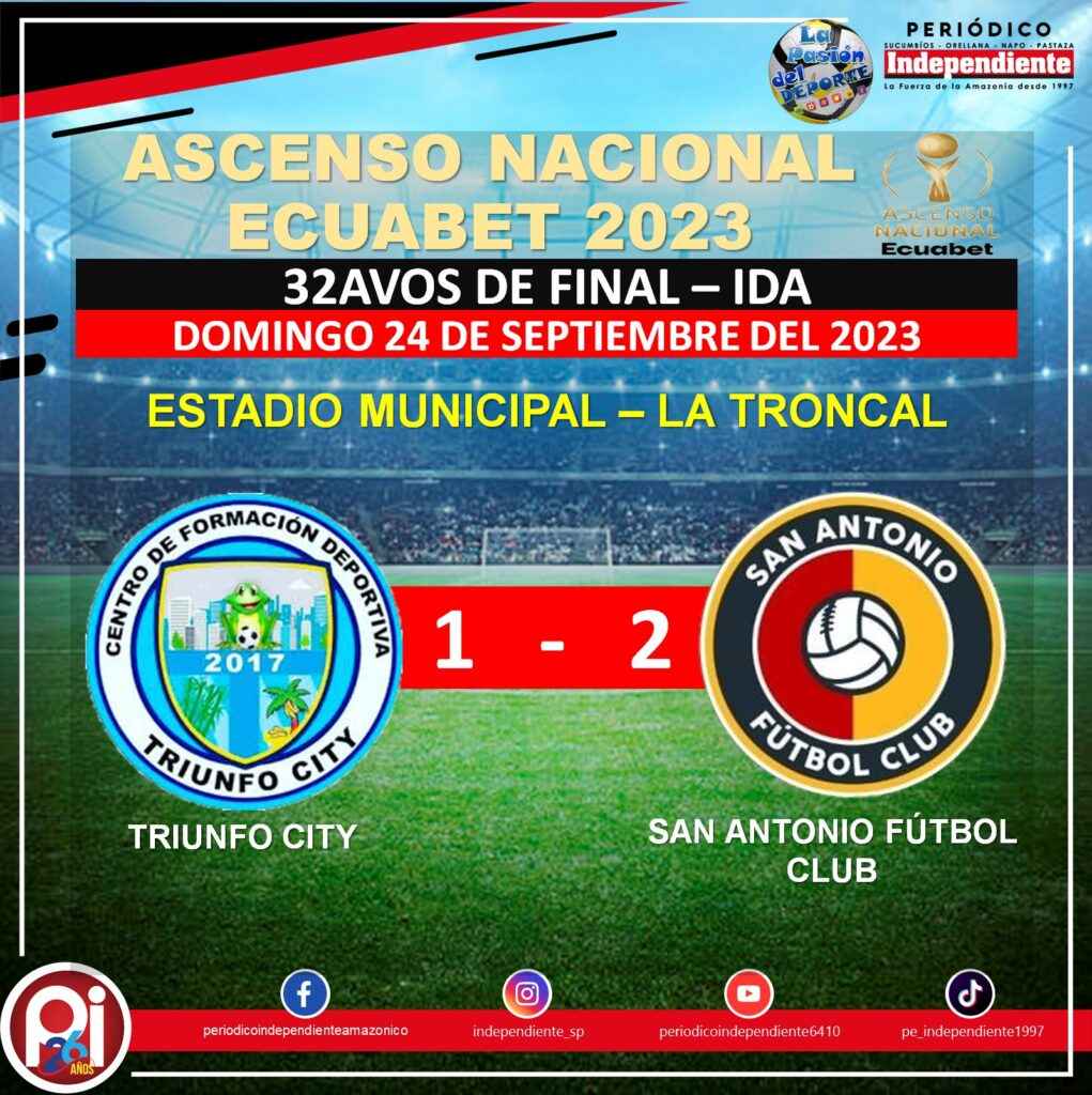 En el Municipal de La Troncal el Triunfo City no pudo ante San Antonio Fútbol Club y cayó derrotado 1 – 2, y deberá prepararse al máximo para darle vuelta a ese marcador en Imbabura la próxima semana.