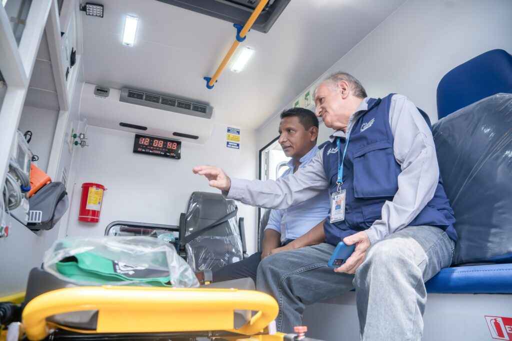 La ayuda que ofrece la Alcaldía con respecto a las unidades de asistencia sanitaria terrestre, es sin duda una de las más significativas que puede tener un gobierno, al Hospital nos ayuda enormemente, ya que todos los días nosotros tenemos la necesidad de trasferir pacientes, por diferentes circunstancias de salud, pacientes que acuden para exámenes a diferentes ciudades del país, así como pacientes que van en una condición crítica inestable y que requieren la asistencia rápida y oportuna de una casa de salud de emergencia de mayor nivel o una casa de salud que tenga prestaciones a las condiciones que nosotros no podemos acceder o no podemos atender; manifestó el doctor Carlos Romero quien estuvo en representación del Director del Hospital Marco Vinicio Iza.