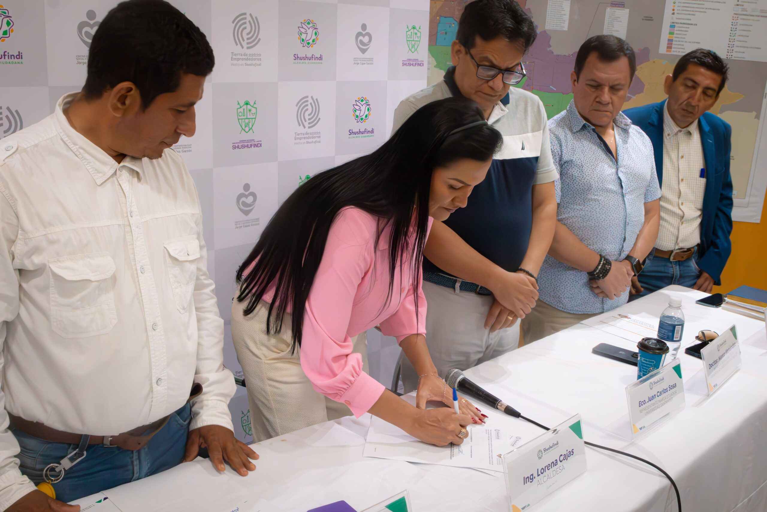 Dentro de mi plan de gobierno prometí contribuir al desarrollo académico y profesional de nuestra ciudadanía shushufindense, con respecto de la educación superior, el 29 de junio del 2022 la anterior administración firmo un convenio de cooperación interinstitucional entre la alcaldía de Shushufindi y la Senescyt para promover acciones y fortalecer la educación superior, en aquel convenio celebrado tenía como objetivo de rehabilitar el edificio de la antigua ESPEA, convenio que finalmente no se terminó por ejecutar. Hoy luego de volver a contactarnos en esta administración con la Senescyt tenemos un nuevo convenio para el fortalecimiento de la educación superior, manifestó en su intervención Lorena Cajas.