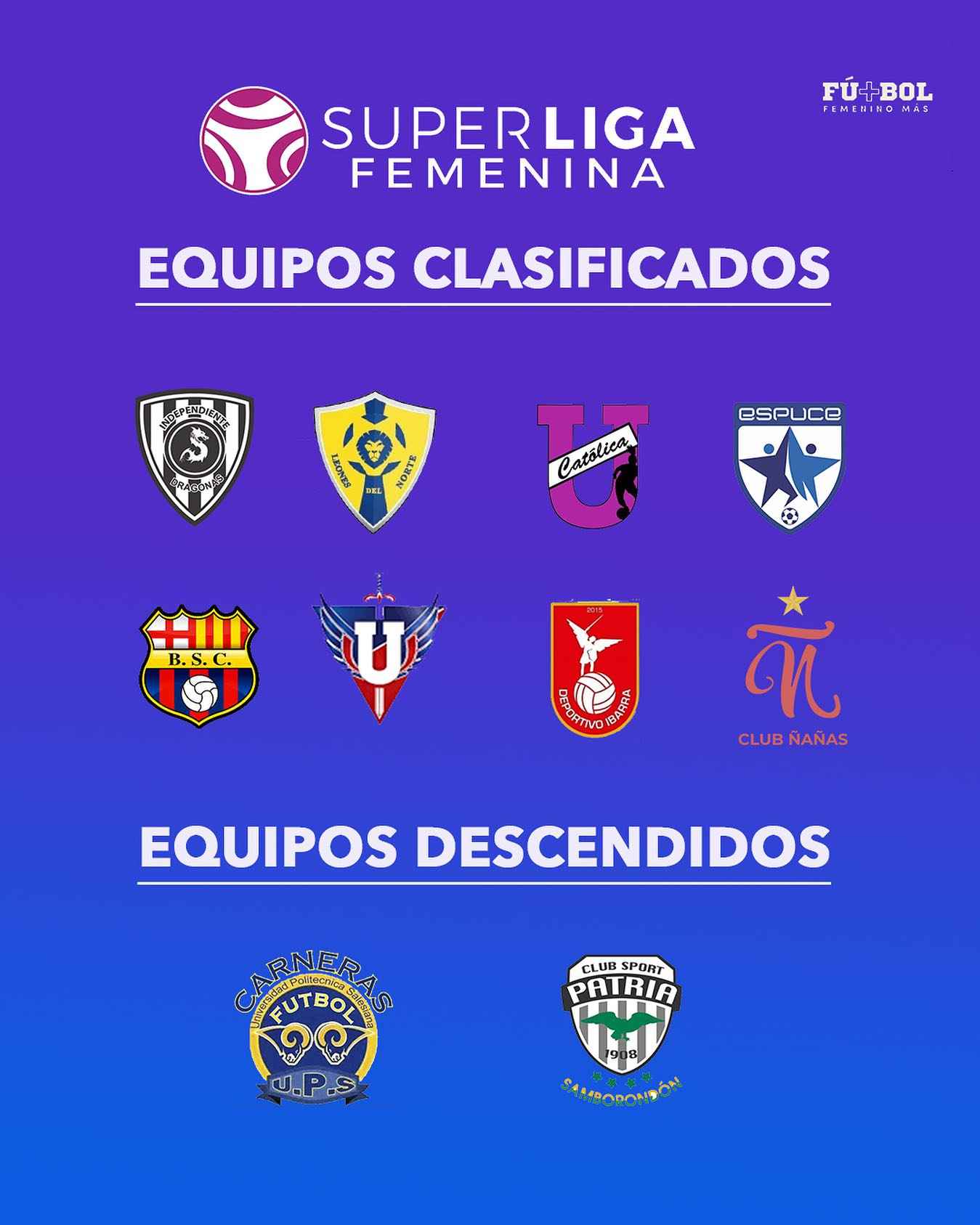 GRUPO 1: Barcelona Sporting Club, Guerreras Albas, Deportivo Ibarra y Club Ñañas.