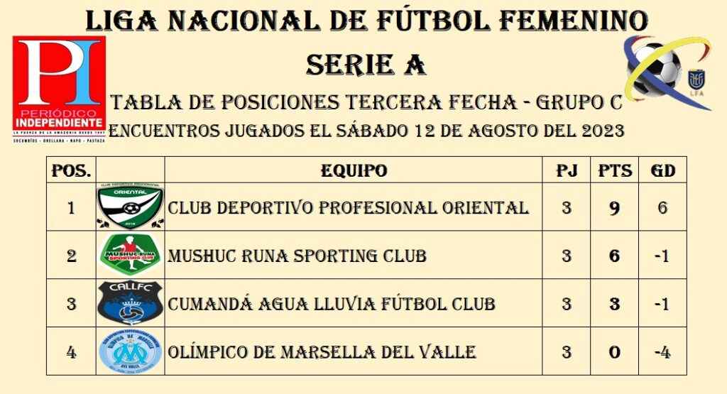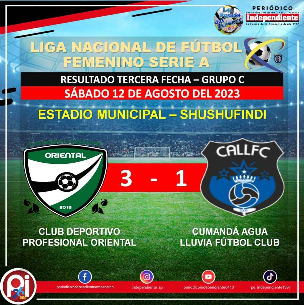 Las dirigidas por el entrenador Darwin Rodríguez lograron conseguir una victoria más dentro de la Liga Nacional de Fútbol Femenino Serie A Grupo C, en esta ocasión su rival fue Cumandá Agua Lluvia Fútbol Club de Tungurahua a quienes doblegaron por un contundente 3 – 1.