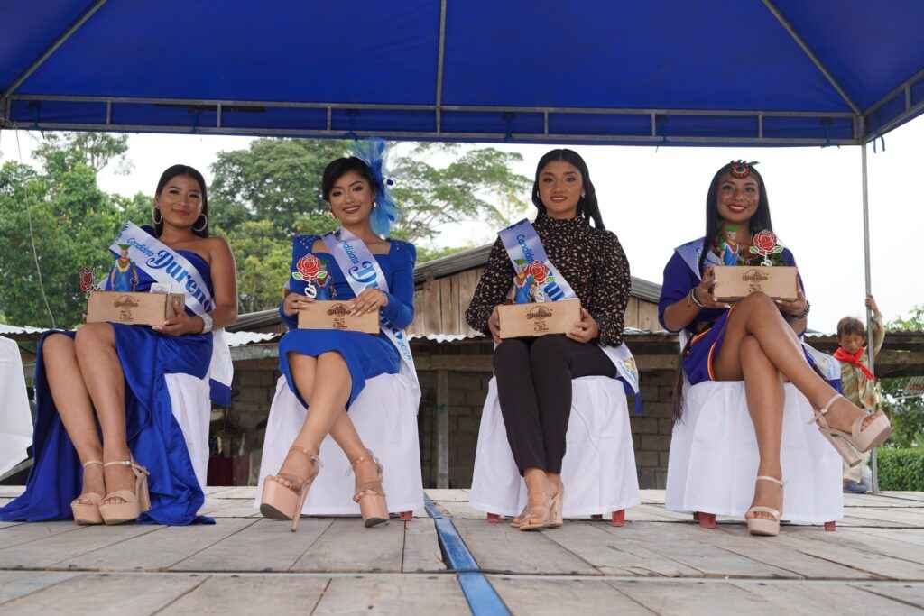 La Parroquia Dureno perteneciente al cantón Lago Agrio vivirá del 24 al 30 de abril las festividades por los 55 años de parroquialización, Kerlyn Sánchez representante de la Comunidad 12 de Octubre, Daniela Avendaño representante del Club Deportivo Arsenal, Jinela García representante de la Comunidad 24 de Mayo y Karen Narváez representante de Upirito Kankhe.