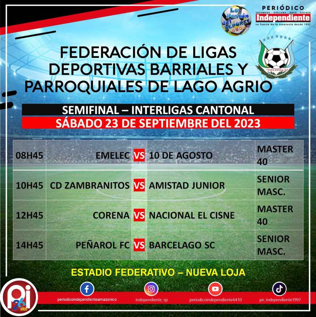 El pasado fin de semana se jugaron la tercera y cuarta etapa (cuartos de final) donde se definió a los 4 finalistas del campeonato Interligas Cantonal de Lago Agrio, el torneo había iniciado con la participación de 48 clubes de varias Ligas Barriales y Parroquiales del Cantón Lago Agrio quienes habían realizado sus torneos locales.