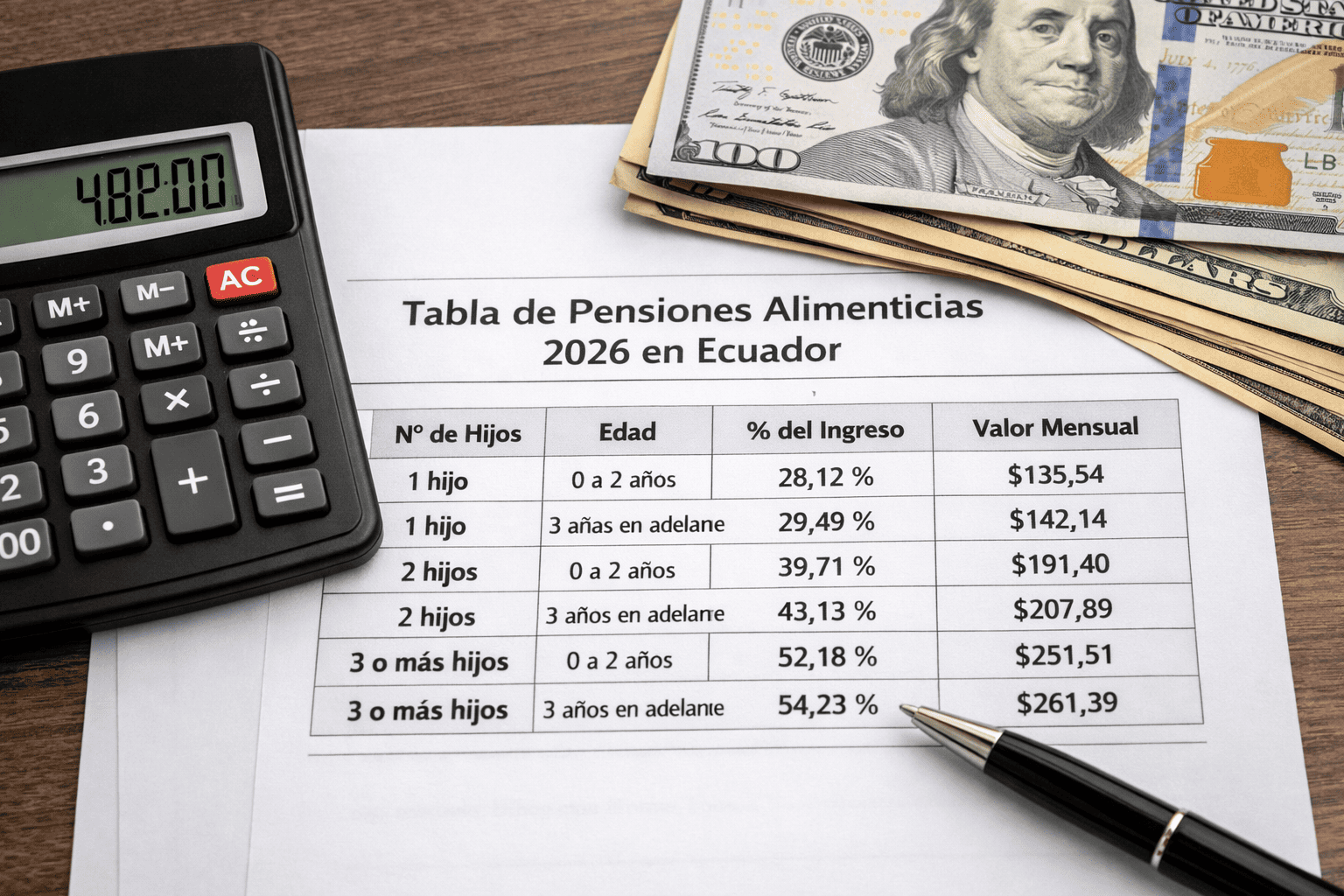 El Ministerio de Desarrollo Humano (MDH) expidió la Tabla de Pensiones Alimenticias correspondiente a 2026, un instrumento legal que regula los montos mínimos de pensión en Ecuador y que se actualiza conforme a variables económicas oficiales.