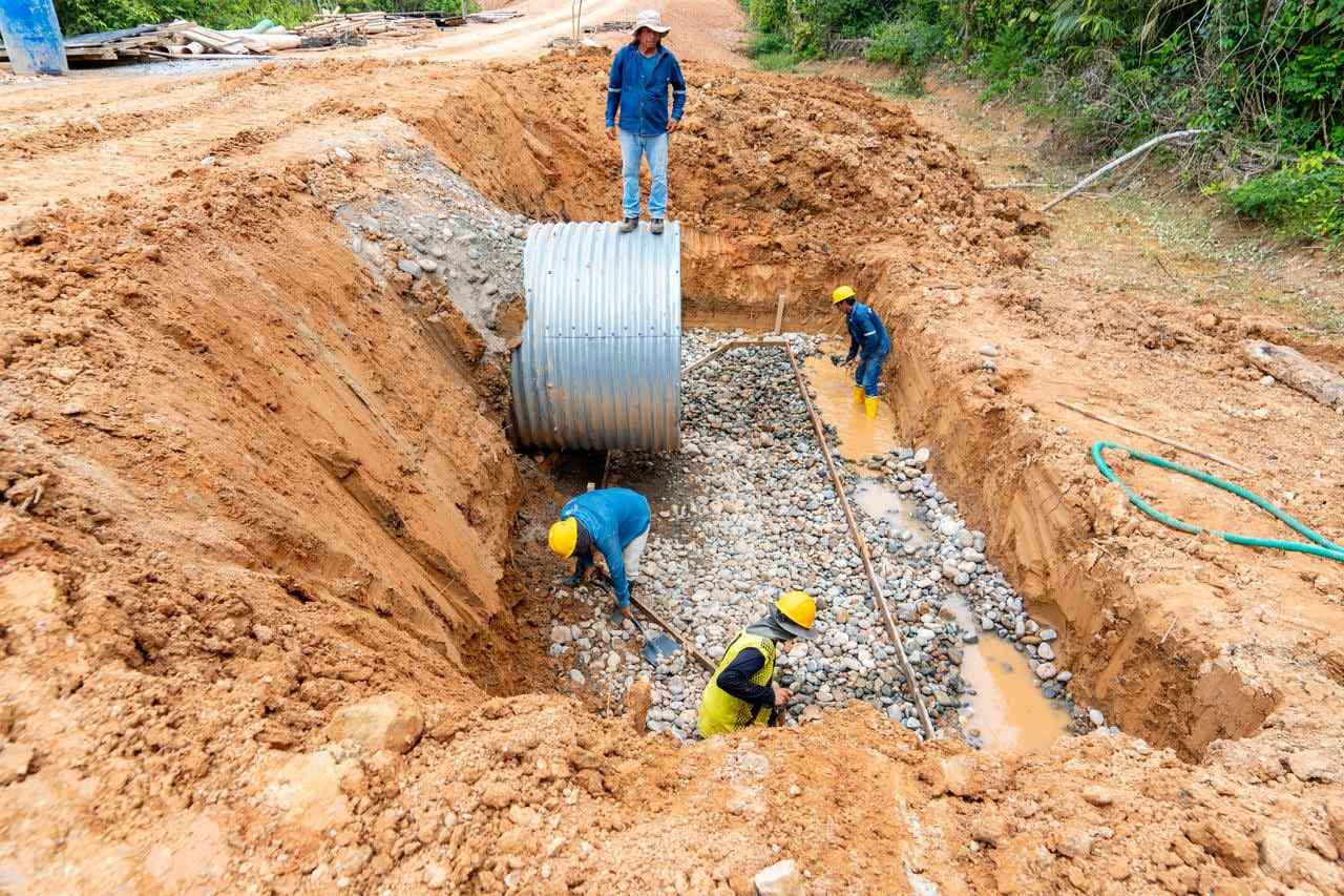 La construcción de esta vía no solo mejora el acceso a la comunidad, sino que también genera empleo para los habitantes del sector, quienes participan en labores de mano de obra y en la provisión de materiales, como el empalizado utilizado en el proceso constructivo.