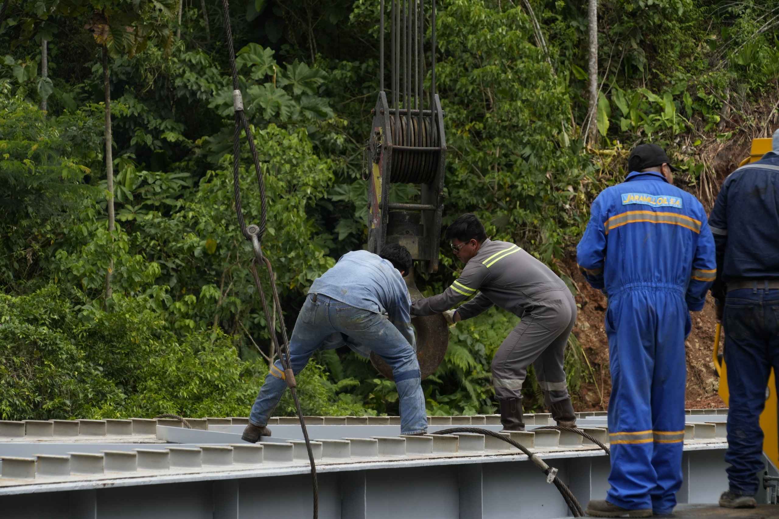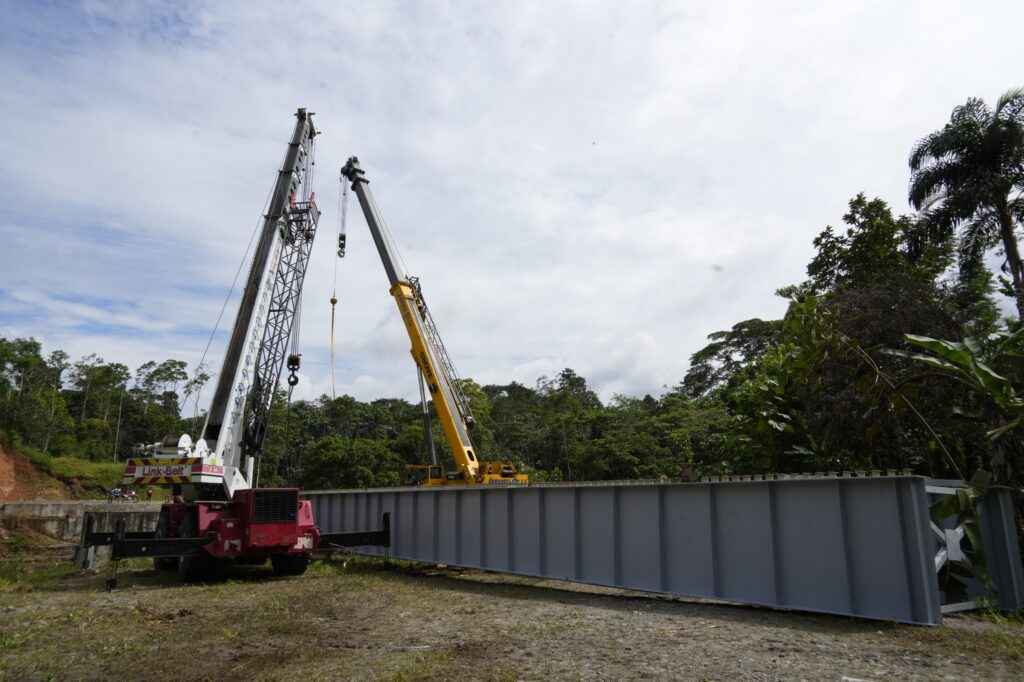 La Prefectura de Sucumbíos construye un puente carrozable de 45 metros luz sobre el río Pusino, que beneficia a las comunidades; Cochapamba, Playas de Oro, La Libertad, Rumihurko y Puruhaés, pertenecientes al cantón Lago Agrio.
