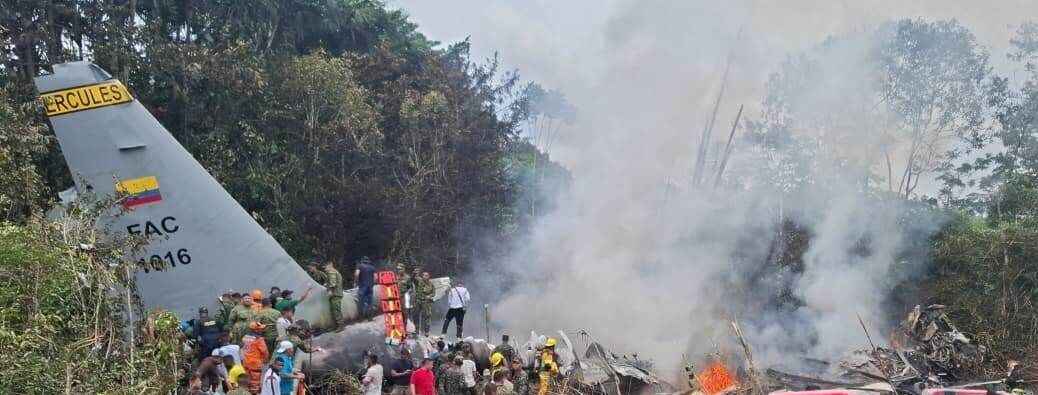 Un avión militar Hércules C-130 de la Fuerza Aeroespacial Colombiana se estrelló en Puerto Leguízamo, en la región amazónica, dejando un saldo preliminar de 66 fallecidos, cuatro desaparecidos y 57 heridos, según el Ministerio de Defensa.
