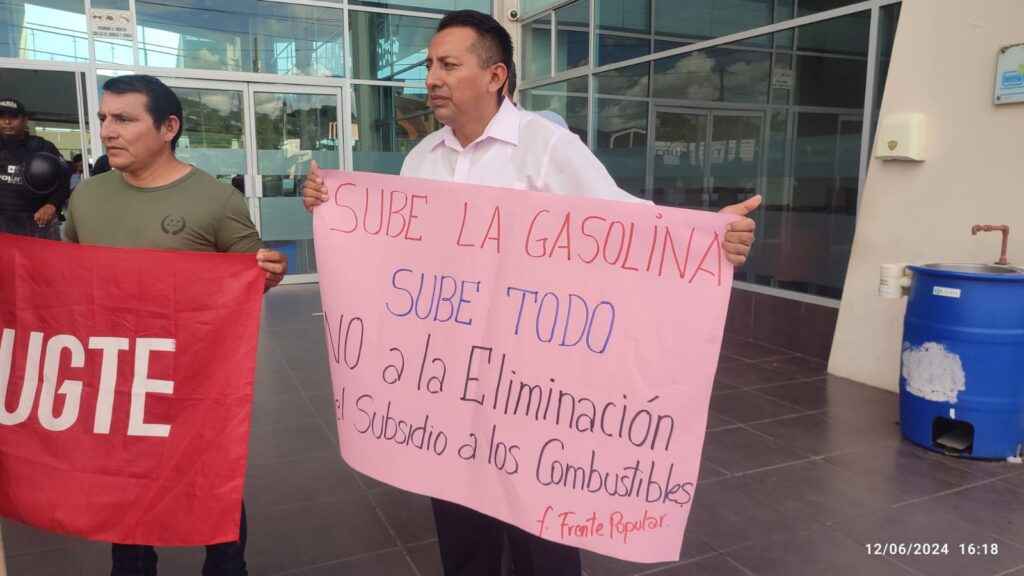David Andrade presidente de la UNE, manifestó, el día de hoy hemos sido convocados por el Frente Popular y todos quienes son parte del mismo, nuestra presencia tiene como objetivo entregar al señor Gobernador un documento en el que expresamos nuestro rechazo ante las pretensiones del Gobierno de quitar o eliminar lo que es el subsidio a los combustibles de gasolina Extra y Ecopaís, recordar que este combustible no sirven para tanquear vehículos de alta gama.